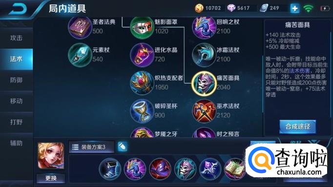 剩余的就是一些增加法术穿透和最大化法强的装备了。痛苦面具,增加140法术强度,同时增加冷却缩减和法术穿透,重要的是它的被动增加的法术伤害对于坦克来说简直就是梦魇,按照最大生命值的比例来造成伤害的机制可以在坦克身上造成成吨的输出。接下来的虚无权杖和贤者之书都是日常输出装备,没什么好说的。