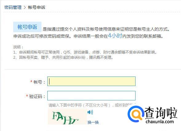 申诉找回:填写QQ号及验证码,然后点击确定。