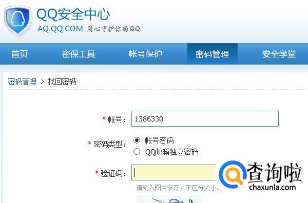 填写要找回的QQ号及验证码。