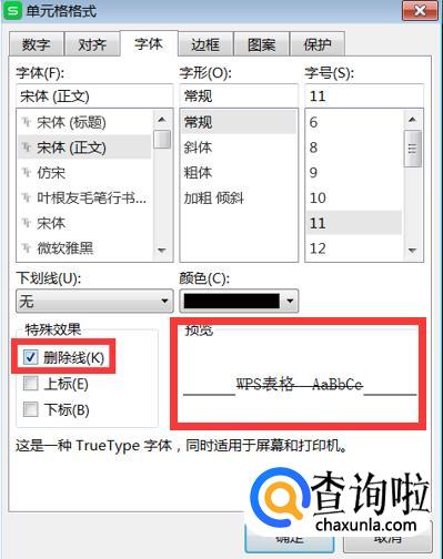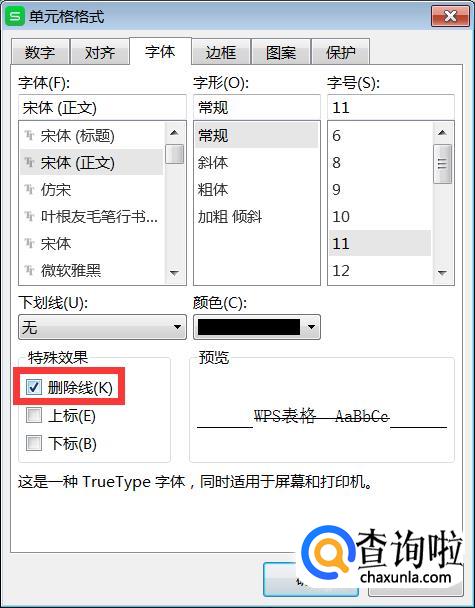 然后我们会看到“删除线”勾选上前面的小方框。