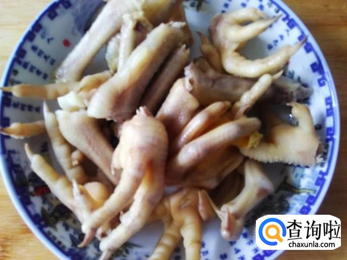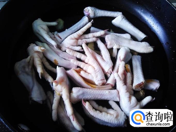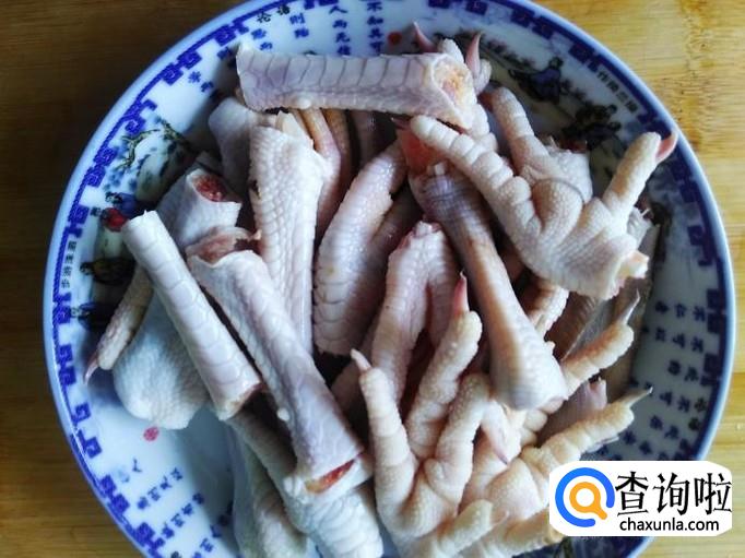 今天买的鸡脚都是土鸡的鸡脚,所以比较瘦小。把鸡脚清洗干净,然后把每个鸡脚斩成两段。