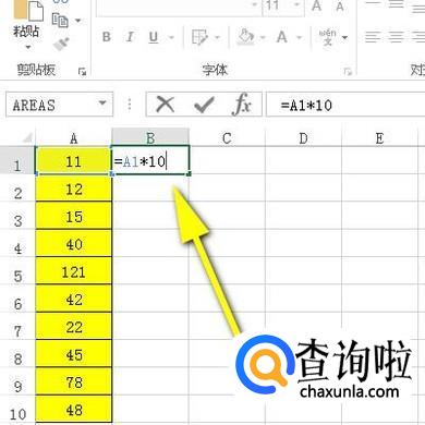 以下图A1:A10这区域单元格的数据为例;A1:A10这区域每个单元格数据都要乘以10;结果显示在B1:B10单元格中。