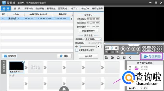 我们单击上方“添加视频”或者双击下方都可以快速的添加视频,如图。