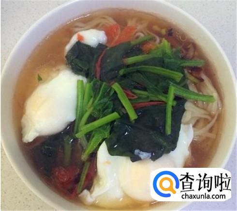 锅里烧开水,打进去一个荷包蛋,把面条放进去煮熟,加上一点青菜,食盐和吃面条酱油调味,滴一滴香油就可以吃了。