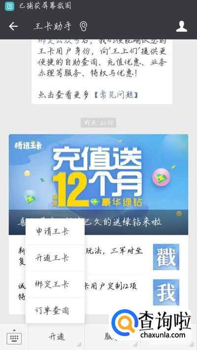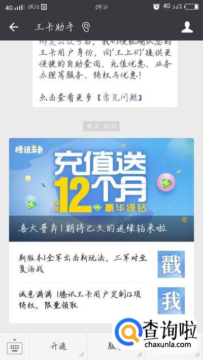 手机QQ浏览器是属于腾讯的,所以要这个免流量,需要办一张腾讯大王卡。首先打开微信这个软件,如图1所示。在公众号里找到王卡助手。如图2所示。