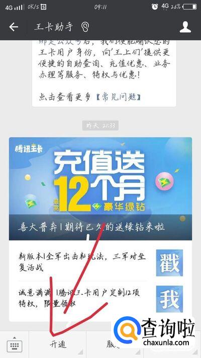 进入公众号后,会出现一个新的界面,如图1所示。在点击下方从左往右数第一个开通按钮,如图2箭头所示。会出现一个新的界面,如图3所示