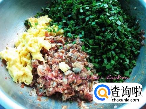 面粉500克,猪肉,鸡蛋,韭菜,盐,味极鲜酱油,香油等适量。