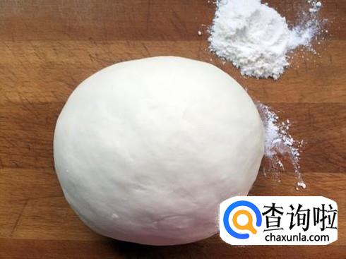把面粉放盆里,加入温水,和成稍硬的面团。肉盒子的面一定要用温水,而且要和的硬一些。