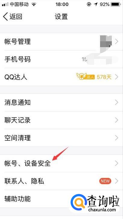 首先我们登录手机qq后点击左上角的头像进入到设置功能,在设置里面点击账号、设备安全。