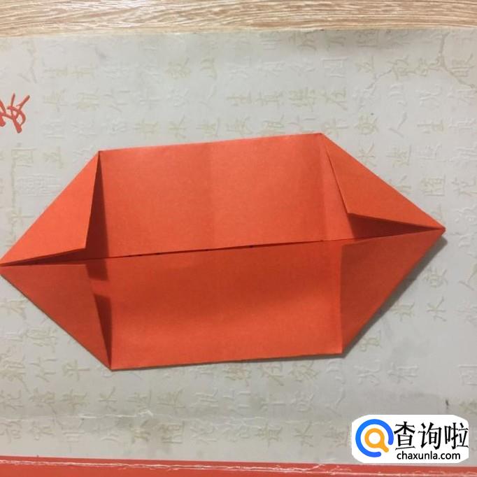 然后将两个底角沿中线对折。