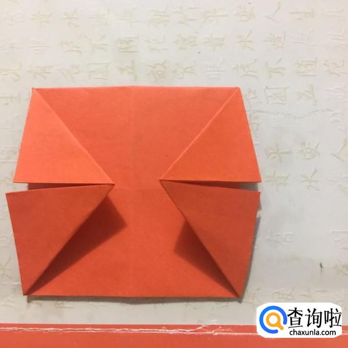 接着翻个面将四个底角折成三角形。