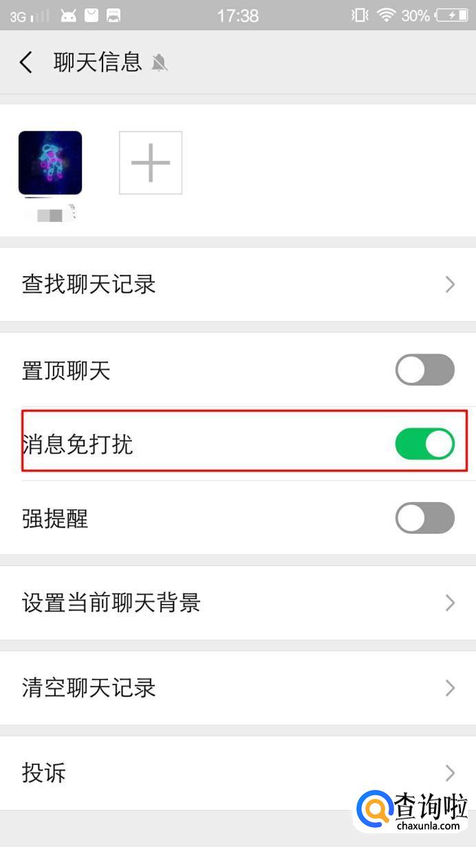 进入聊天信息主页面后,如图,我们点击’消息免打扰‘。