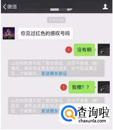 如果我们将对方删除,对方给你发消息就会提示‘XXX开启了朋友验证,你还不是他(她)朋友,————’并加红色感叹号。