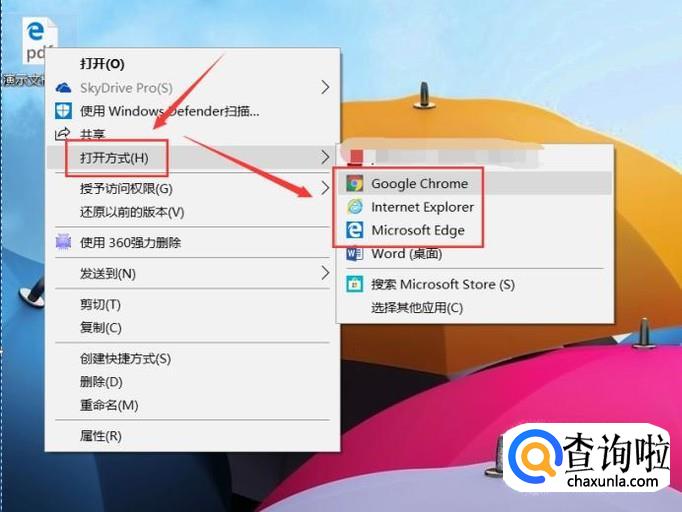 如果仅仅是查看PDF文件,我们可以通过电脑上面的浏览器打开PDF文件。右键单击PDF文件,在打开方式中选择任意浏览器打开。