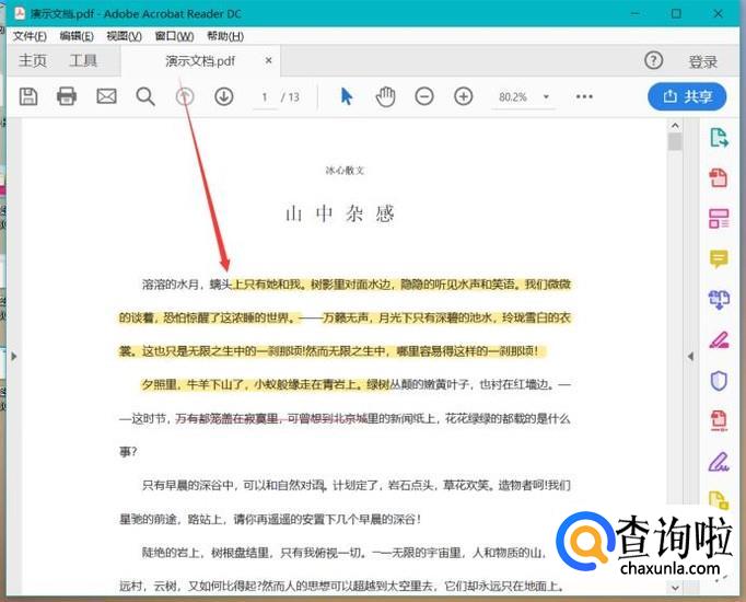 使用专门软件打开PDF文件的话,我们就可以对文件进行编辑,如突出显示、添加删除线等。