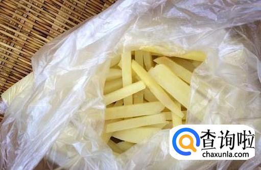 土豆条放入食品袋里,入冰箱冷冻后,可随取随炸。当然,如果冰箱够大,土豆条可一根根并排冷冻。