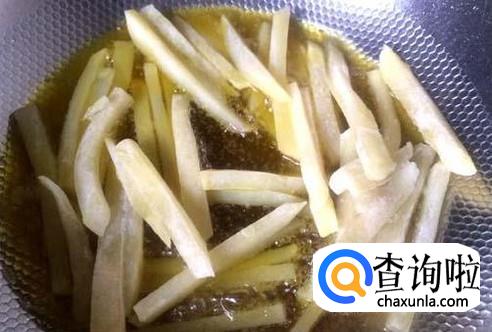 炸至土豆条金黄色,即可捞起沥干油后装盘。