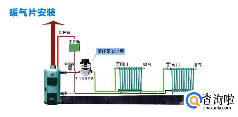 暖气循环泵一般是安装在暖气的出水口上面。因为这样的话,暖气使用的效果才会比较均匀一点,制热的效果会比较稳定一点。