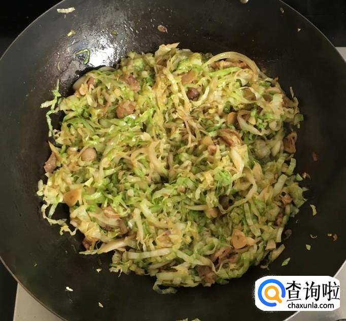 倒入大头菜丝旺火翻炒均匀使其均匀上色