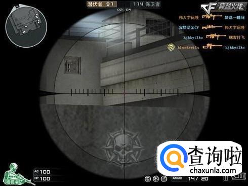 耐心,作为一名狙击手,除开技术不谈,我们最需要的就是耐心,在游戏里也不例外,有时我们知道哪个地方一定会有人,那么这时就需要我们的耐心了,将枪架好,耐心等待,等待着我们的猎物出现。