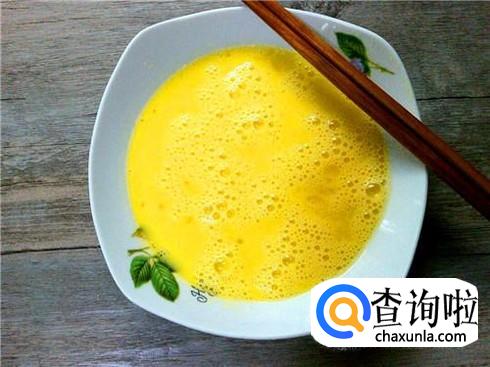 碗里打一个或者两个鸡蛋,根据你的食量决定。一定要用筷子打散,让鸡蛋黄和蛋清完美的融合在一起。
