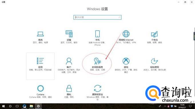 点击“时间和语言”设置。