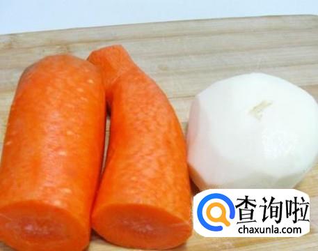 将土豆和胡萝卜削去皮,用水洗净。