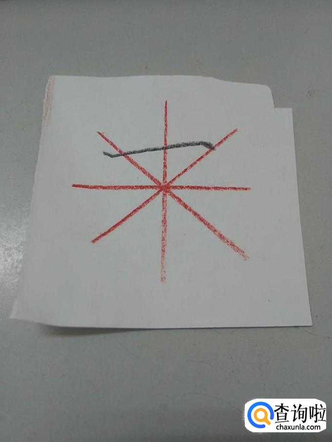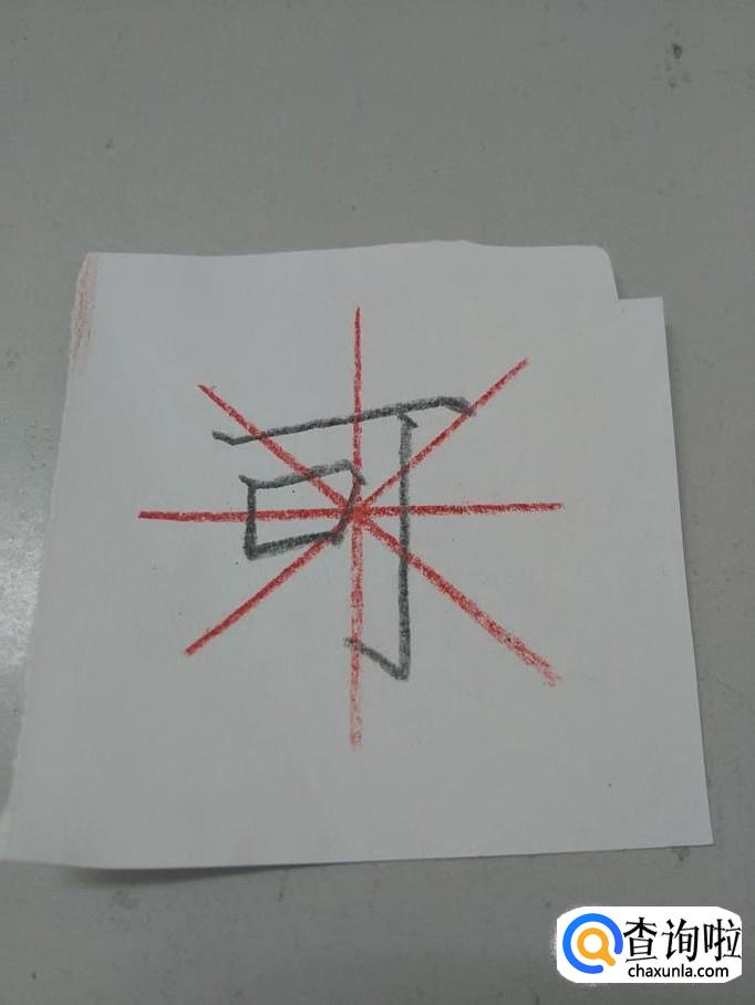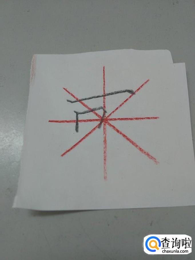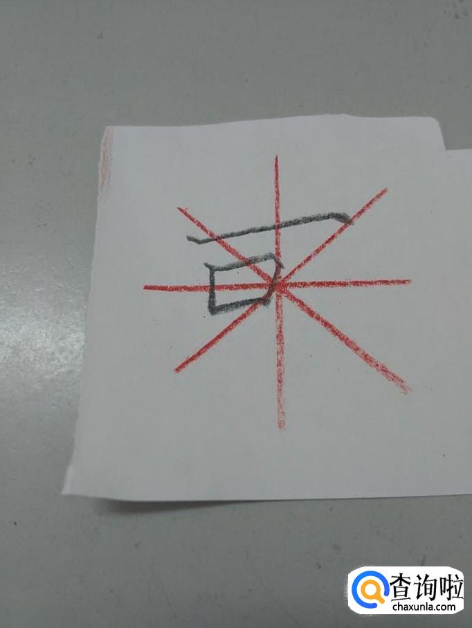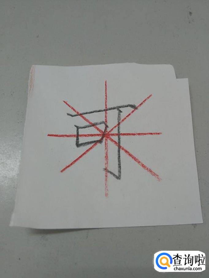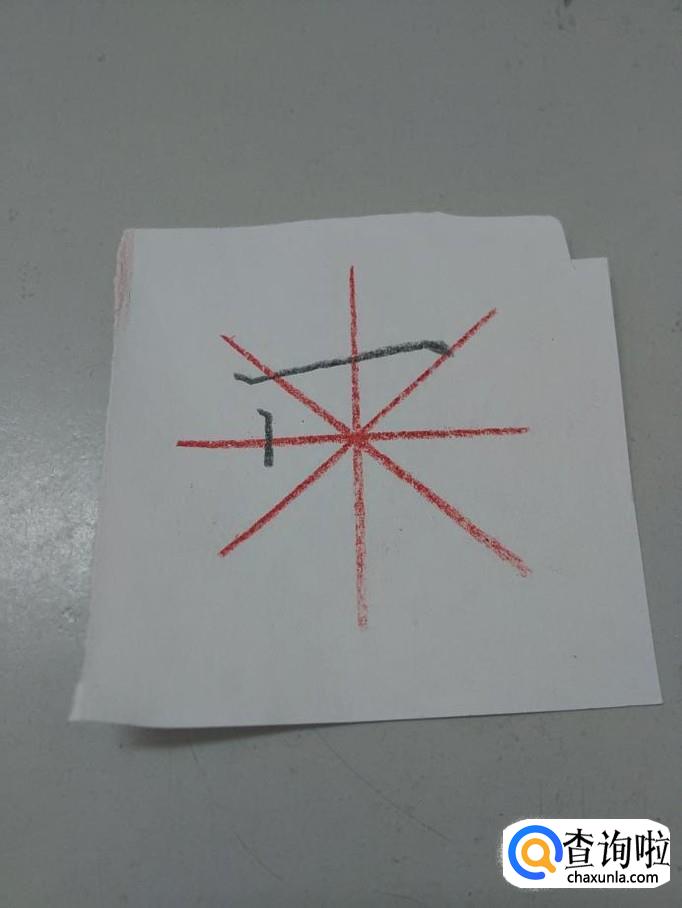 在竖的起笔处,先顿一下,然后向右提至米字的中线处,再顿一下,这一横要和第一笔的横相平行,才好看,然后向下写一折,稍微向左下方斜线一点,长度不要超过第二笔的竖的收笔处。