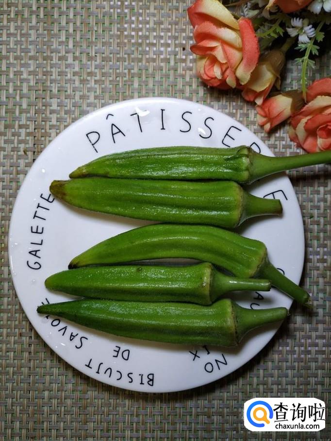 准备适量秋葵,用清水洗去秋葵表面的细小绒毛,再准备一根胡萝卜,洗净备用。