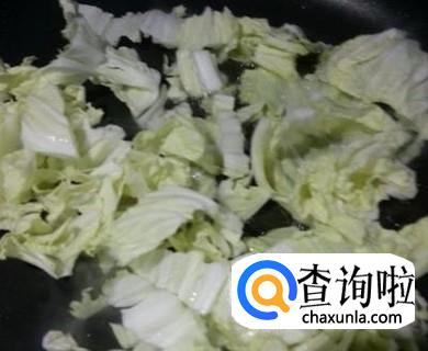 锅烧热,加入适量油,将大白菜放入锅中翻炒两下