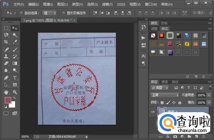 首先我们打开电脑里面的photoshop软件,然后打开一个带有公章的扫描图片。