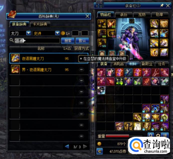 这时我可以看到夜语黑瞳是需要去亚瑟那里升级获得。