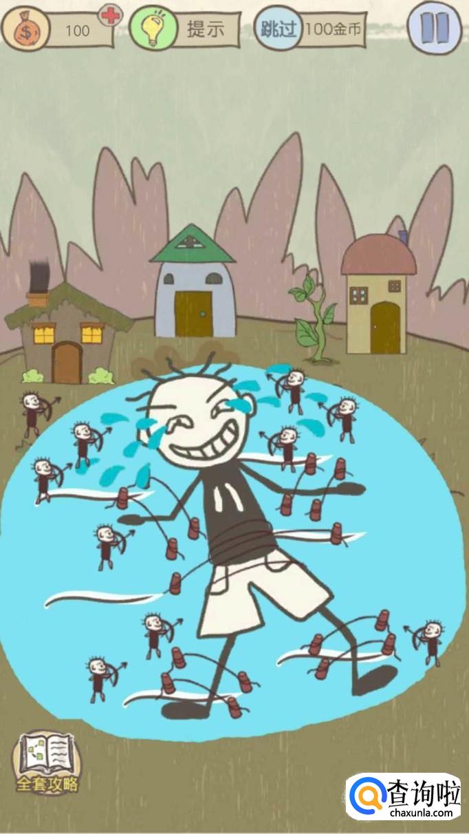第一关:挠史小坑的脚底,然后笑出的眼泪水可以淹死小人哦,这样史小坑就得救了。