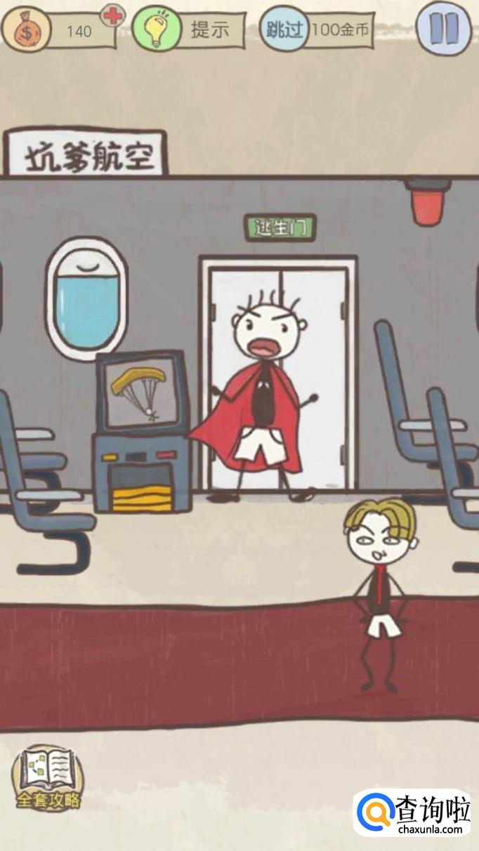 第五关:将右边红色的帘子移到史小坑身上,史小坑就会秒变超人,会飞的超人还会害怕跳机吗?当然是不怕啦!