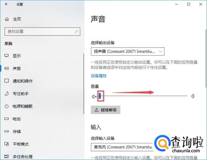 弹出的界面,我们可以看到我们的电脑声音被我们设置成静音了,我们将声音大小的调节键向右滑动;