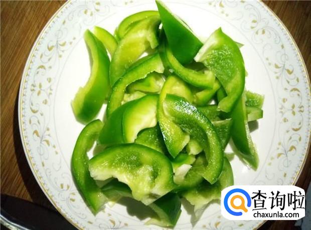 灯笼椒清洗干净,去掉辣椒籽,切丝,备用。