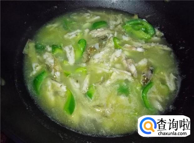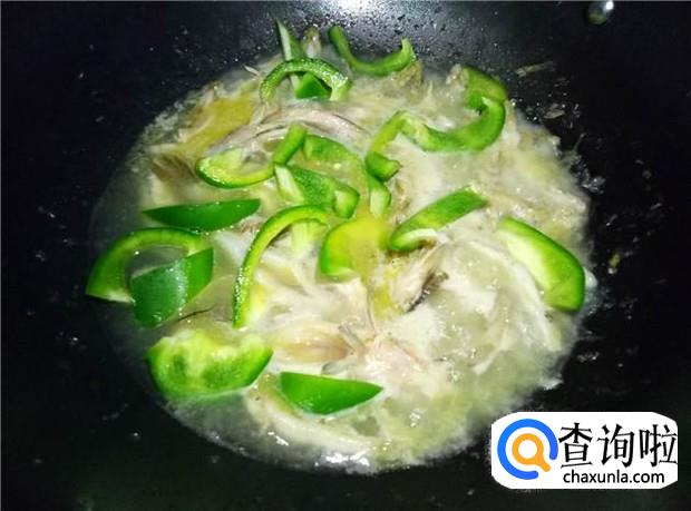 然后再放入切好的灯笼椒,再煮三分钟左右,加入适量的盐,即可关火。