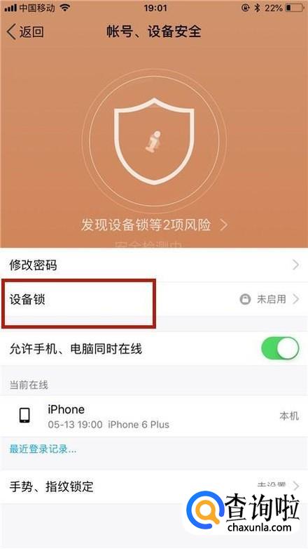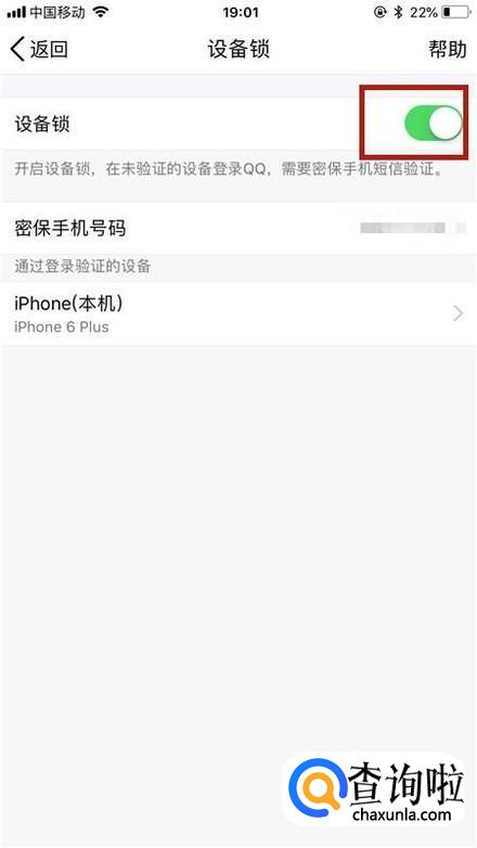 最后开启设备锁开关,如下图所示。这样操作完成,我们就能够有效地防止qq异地登录问题了。