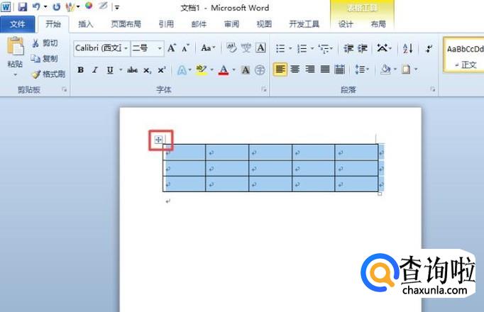 然后我们点击表格左上角,会出现一个按钮,我们点击它,从而选中该表格;