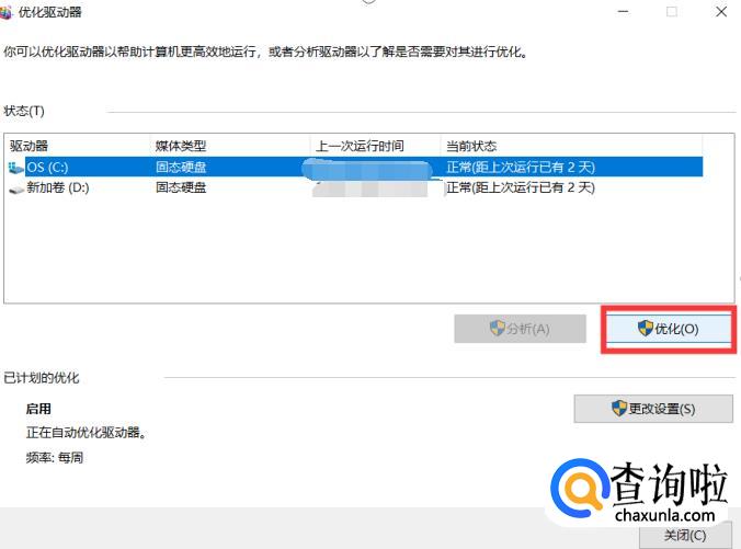 找到之后,我们点击打开,然后点击C盘,再点击右下角的磁盘碎片整理或者优化按钮。