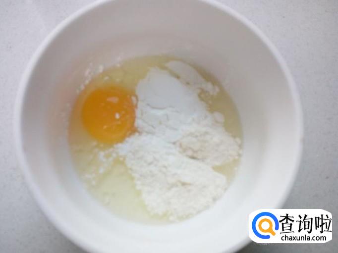 碗里放入一个鸡蛋,2匙儿面粉,1匙儿淀粉,不要兑水(如果使用的时候,不够用,再按照这个比例勾兑)。