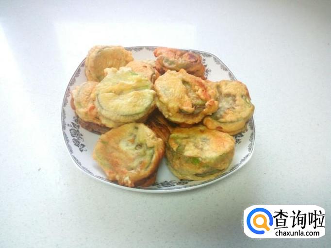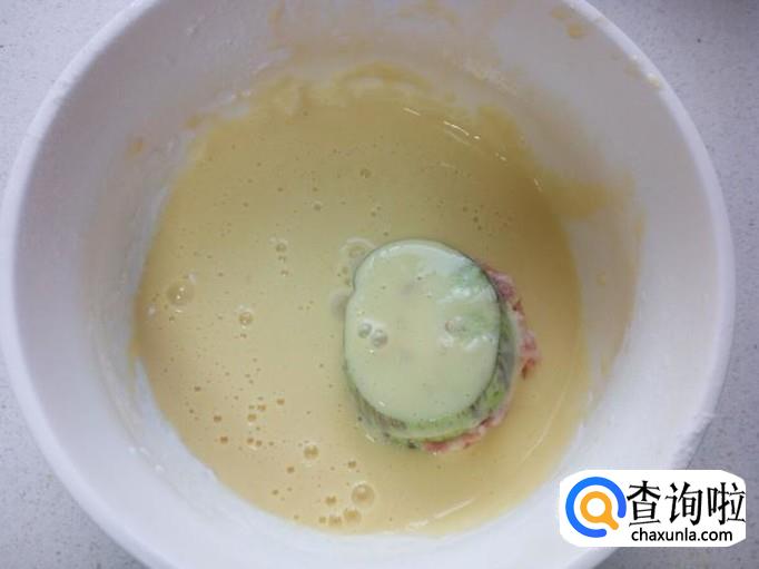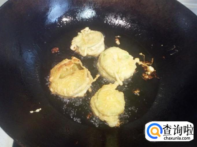 茄子夹煎炸成两面金黄捞出即可。