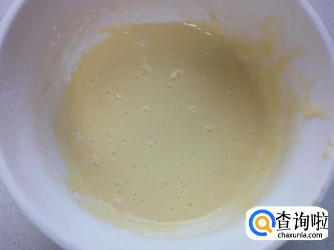 把鸡蛋和面粉,淀粉搅拌成面糊(用筷子蘸面糊,面糊往下淌成一条直线不断)。