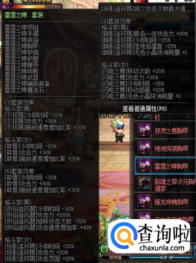 戟之死神套装,着重对【闪电之舞】和【瞬影连环踢】这两个技能的冷却时间进行了缩减,并提升了这两个技能的攻击力。