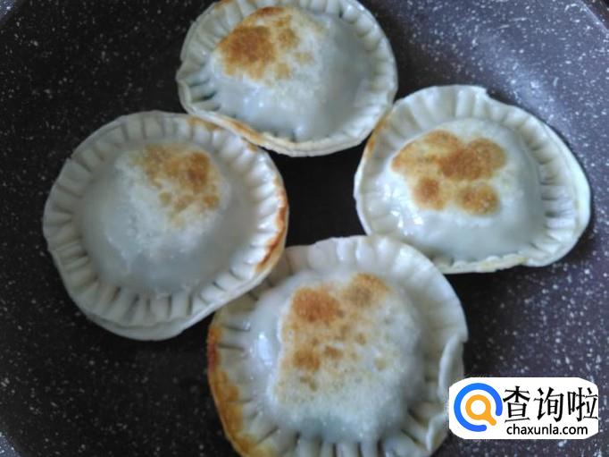 煎得2分钟左右把饺子翻转。