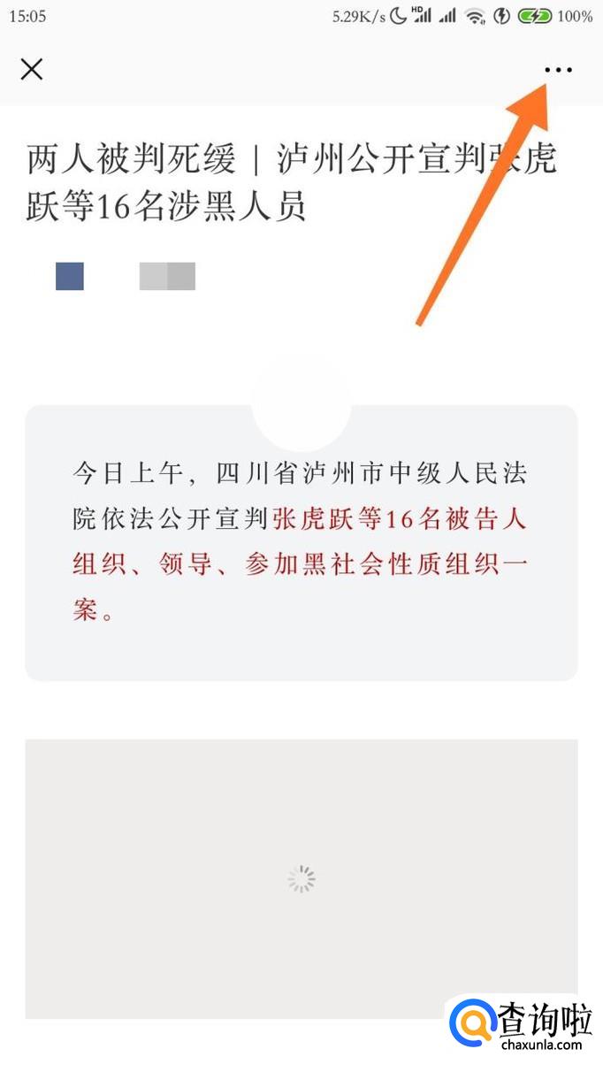 加载好之后,我们可以看到右上角有一个三个点的图标,点击一下,然后点“分享到朋友圈”。