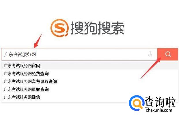 首先,在浏览器中打开搜狗进行搜索,比如广东省的,就搜索广东考试服务网。