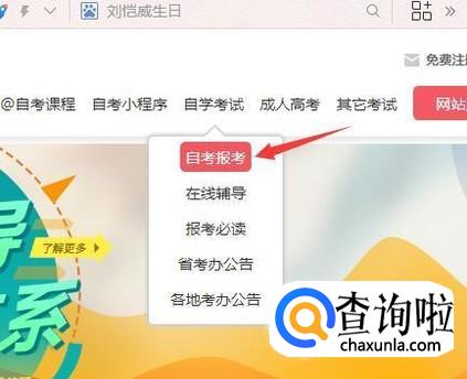 找到后打开考试服务网。在导航菜单中找到要考的类型,比如自学考试,点击。