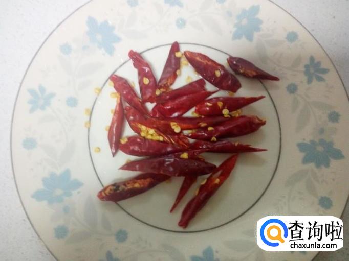 红干椒用水清洗干净,控干水分,斜刀切成段。切好葱,姜备用。
