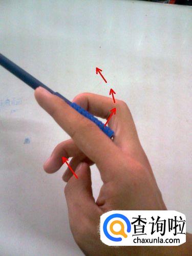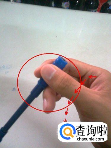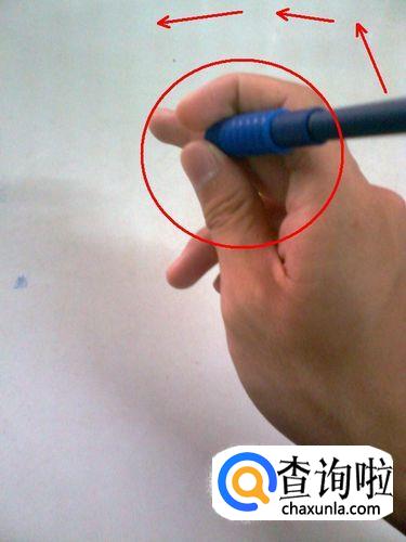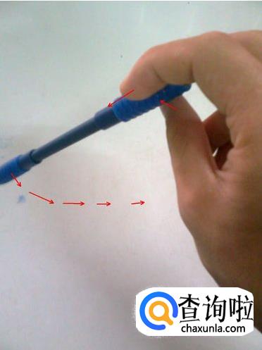 用大指托住笔,一指和大指夹住笔,甩动笔使其绕大指和一指夹住的点旋转